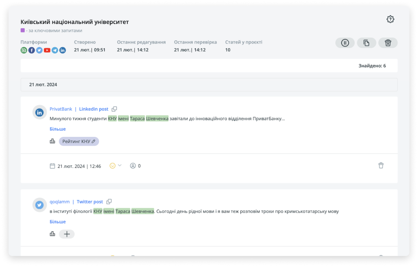 Ми знаємо яку значну роль в наш час відіграють соціальні мережі та медіа для створення особистого бренду і підтримки репутації, як персональної так і бізнесу. А також потреба вчасно знати, що говорять про вашу персону або бізнес в Інтернеті. Тому для моніторингу ми відібрали найширший перелік джерел актуальної інформації: